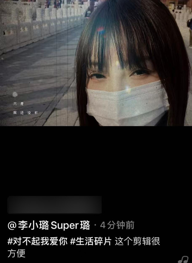 5月17日,否认新恋情不久后的李小璐分享了一条带着话题“对不起我爱你”和“生活碎片”的短片,15秒长度的短片中,应该都是李小璐平日里积累的一些视频素材。