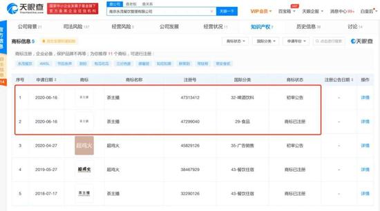 根据茶主播官网信息,该品牌隶属于南京永茂餐饮管理有限公司(下文简称“永茂餐饮”)。天眼查信息显示,永茂餐饮拥有名为“茶主播”的商标。