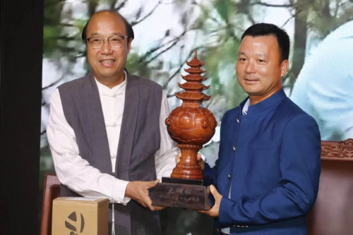 △ 卓木王红木家具有限公司董事长杜承三先生颁发冠军红木奖杯