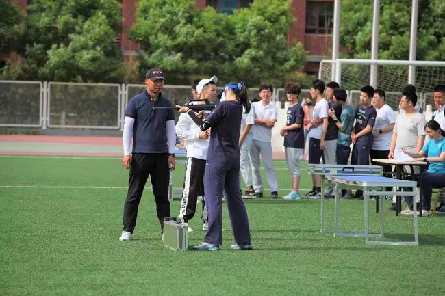 在田径场旱地冰雪体验活动区,包括旱地滑雪、旱地冰壶、旱地冰球、冬季两项、俯试雪橇等项目,同学们通过体育课、体活课和课外活动时间,积极参与,深入体验,感受到属于冬日里的欢乐,展现了激昂的青春,参与冰雪运动,传递冬奥精神。