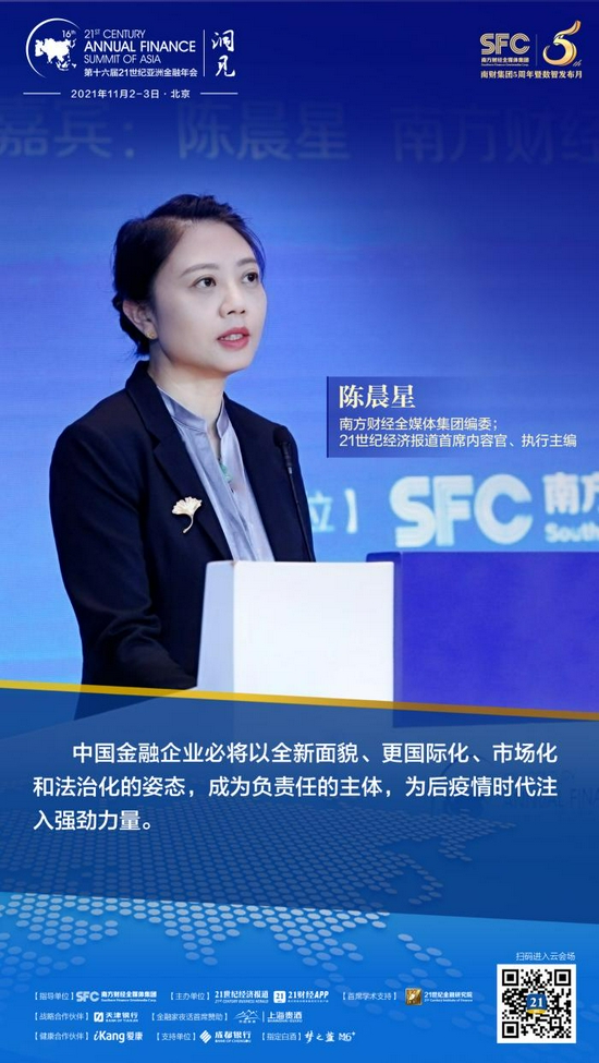 21世纪经济报道记者 李愿 北京报道 11月3日,第十六届21世纪亚洲金融年会主论坛举办。南方财经全媒体集团编委,21世纪经济报道执行主编、首席内容官陈晨星代表主办方致辞时表示,立足新发展阶段,贯彻新发展理念,构建新发展格局,“绿色发展”备受重视,可持续金融也已成为中国金融行业发展的统一共识。