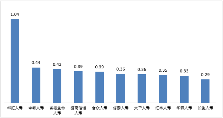 1.华汇人寿的亿元保费投诉量位列人身保险公司第一。2021年第三季度,人身保险公司亿元保费投诉量中位数为2.43件/亿元。其中,亿元保费投诉量居前10位的为:华汇人寿59.40件/亿元;瑞泰人寿11.04件/亿元;中美联泰人寿9.79件/亿元;人民健康9.76件/亿元;大家养老9.73件/亿元;太平洋健康8.78件/亿元;北大方正人寿8.52件/亿元;华泰人寿8.29件/亿元;人民人寿8.28件/亿元;合众人寿8.03件/亿元。