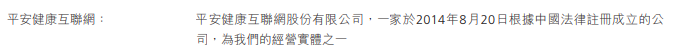 平安健康医疗科技有限公司(简称“平安好医生”,01833.HK)2021年半年报显示,平安健康互联网股份有限公司成立于2014年8月20日,为平安好医生经营实体之一;平安好医生应占经济利益为100%。