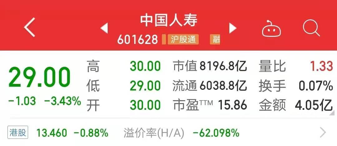 市场层面,中国人寿1月14日收报29.00元,下跌3.43%,较上个交易日,市值蒸发291.1亿元,目前总市值为8196.8亿元。