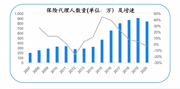 据中国保险代理人渠道调查报告显示,自2012年以来,中国保险代理人数量从300万人保持了数年的井喷式增长,但近年增长逐渐放缓,甚至自2020年起开始减少,且暴露出不少核心问题。