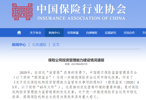 “《通报》是45号文件下发后,保险公司对投管能力的首次‘自评估’。”