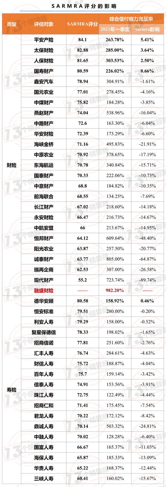此外,需要注意的是,对于融盛财险来讲,由于成立较晚,此次是其第一次参与SARMRA评估。