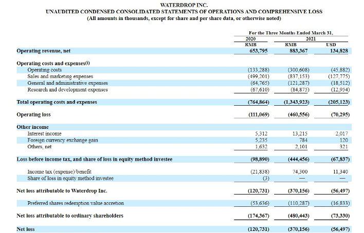 该公司近日发布的上市后首份一季报显示,当季归属于水滴的净亏损为3.7亿元,同比扩大2.07倍。运营成本和费用总额同比增75.71%,远高于营业收入净额的增速,导致亏损迅速增长。