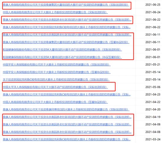 具体来看,泰康人寿2021年持续投资北京燕园养老社区、泰康集团大厦。太平洋人寿投资了上海市黄浦区淮海中路街道123、124、132街坊地块。和谐健康险投资北京SK大厦。