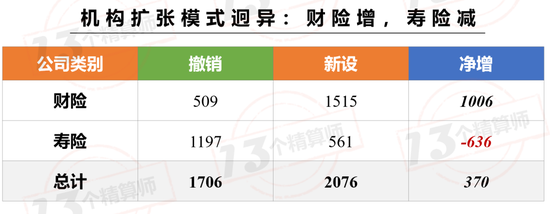 因此,因为这两类机构的裁撤大于新设,导致了寿险机构的净减少。