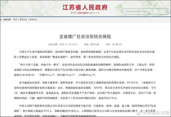 南通、兴化、淄博、靖江……这些地方都有不同名称的综治保险。