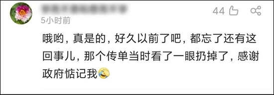 一名网友看到微博才想起来,这份保险是“好久以前了吧,都忘了还有这回事儿,那个传单当时看了一眼扔掉了。感谢政府惦记我。”
