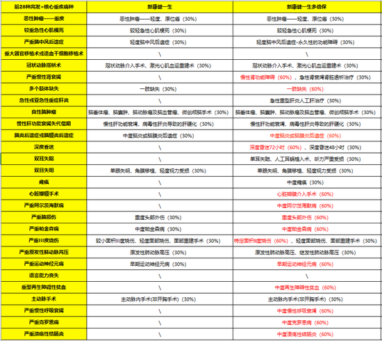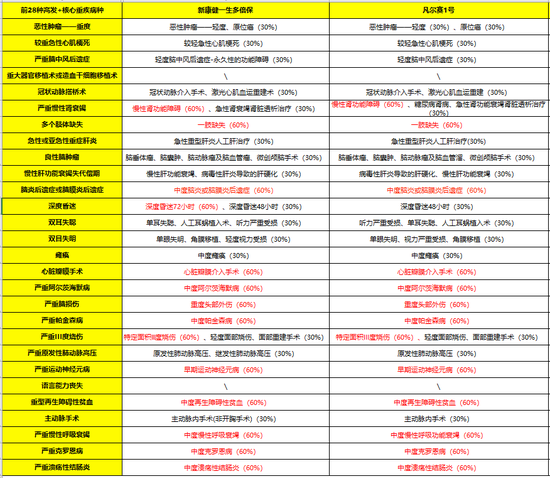 如上图所示,新康健一生的在中早期疾病病种的覆盖上,明显不如多倍保。