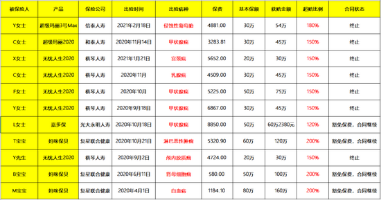 如上图所示,理赔案例几乎无一例外,均是超额赔付,