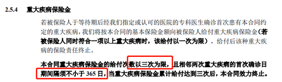 而且我还多说一下多倍保的另外一个特点,即它重疾3次赔付不受三同限制。
