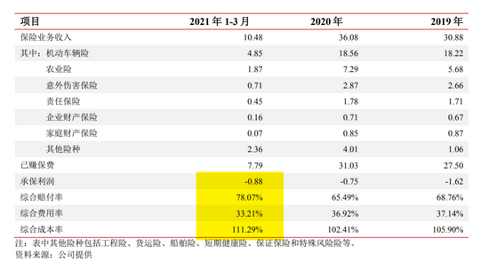 一是,其从2010年至今,综合成本率持续偏高,多数在110%以上,二是,公司已经累计亏损11亿,股东两度增资维护偿付能力。