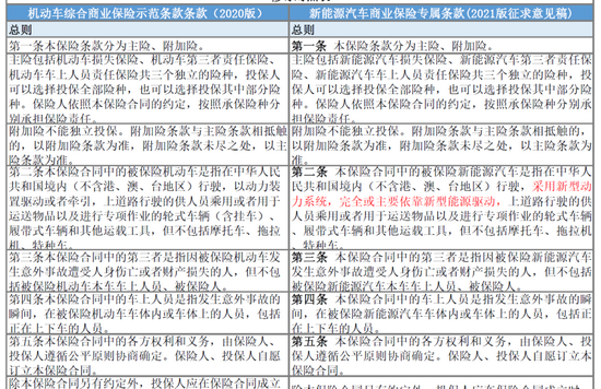 新能源车专属条款“全对比”