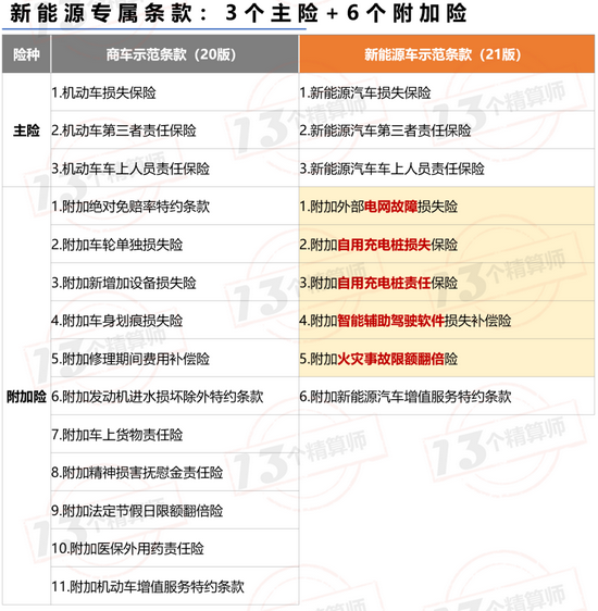 从此次行协发布的条款可以看到,新能源专属条款,主险是3个,附加险是6个,相比传统条款明显精简。