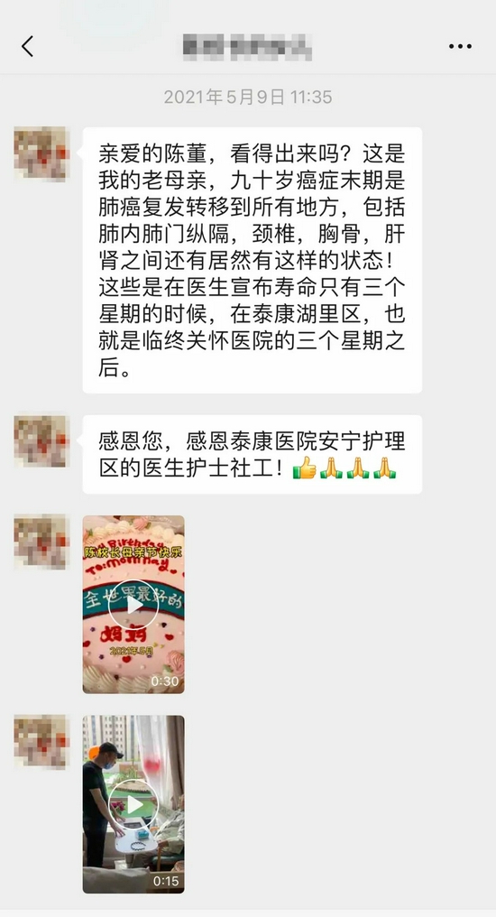 今年5月9日母亲节当天,我收到入住安宁疗护病房的陈校长女儿的信息: