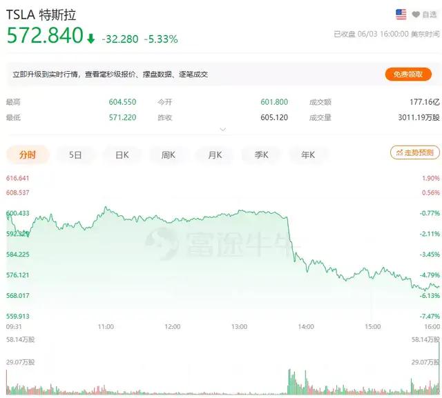 路透社日前报道称,特斯拉5月份在中国的汽车订单较4月份减少了近一半,从4月份的超过1.8万辆下降到约9800辆。受此消息影响,该公司股价大跌超过5%。自今年以来,特斯拉股价下跌了约15%,较1月29日的盘中高点下跌了逾35%。