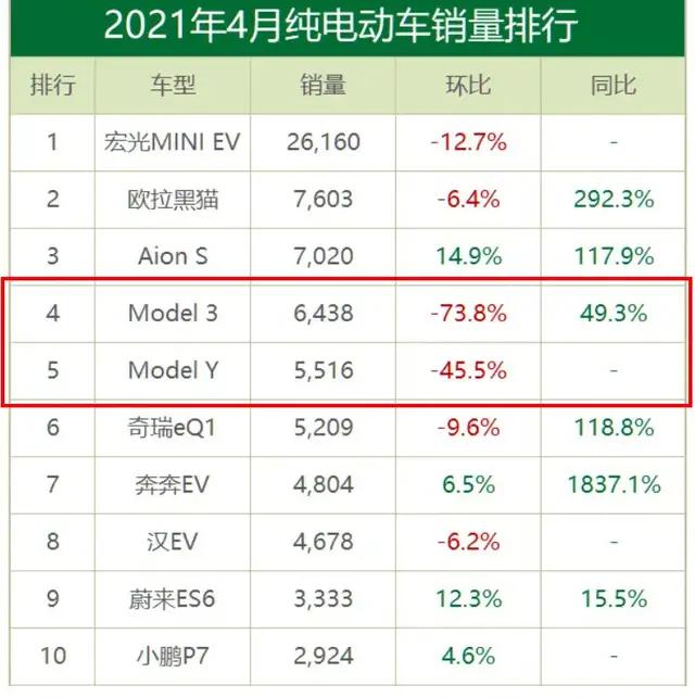 然而,特斯拉4月份在华销量较3月份大幅下滑,国内上险数显示,特斯拉Model 3和Model Y在4月销量分别为6438和5516辆,环比下降74%和45%。现在外媒还据内部消息指出,特斯拉5月在华销量跌破万辆,由此可见,特斯拉的光环正逐步消退。