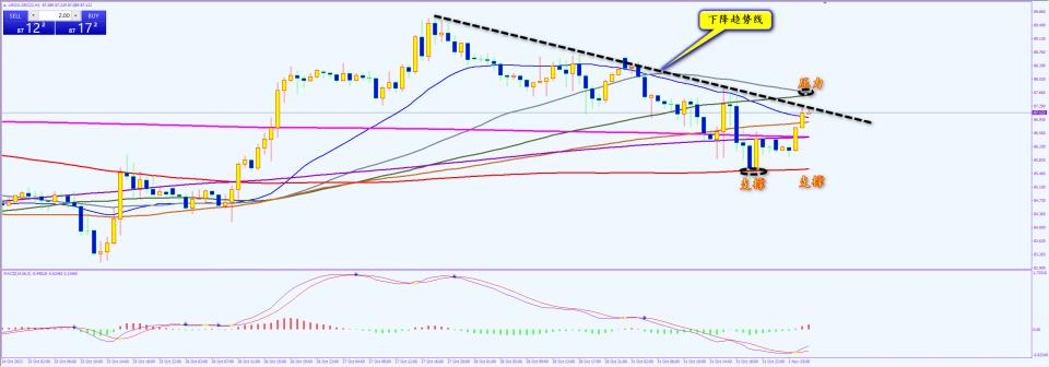 原油86.00和87.00分别做空,止损各70点,止盈各250点;