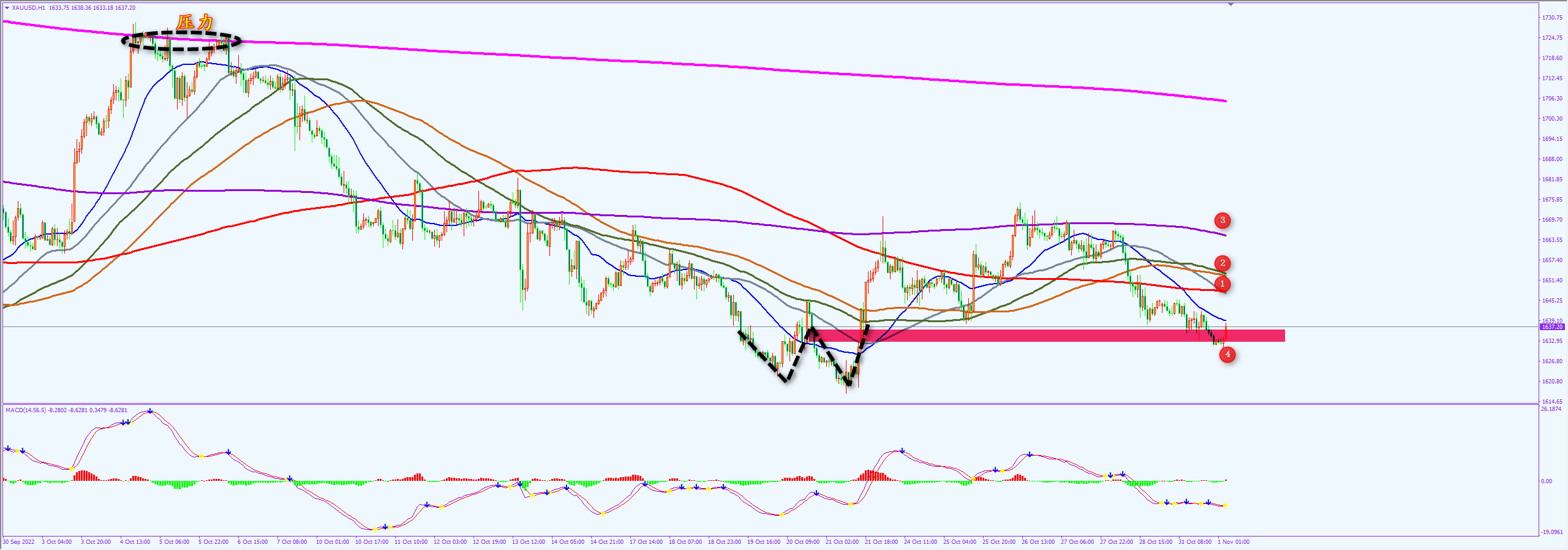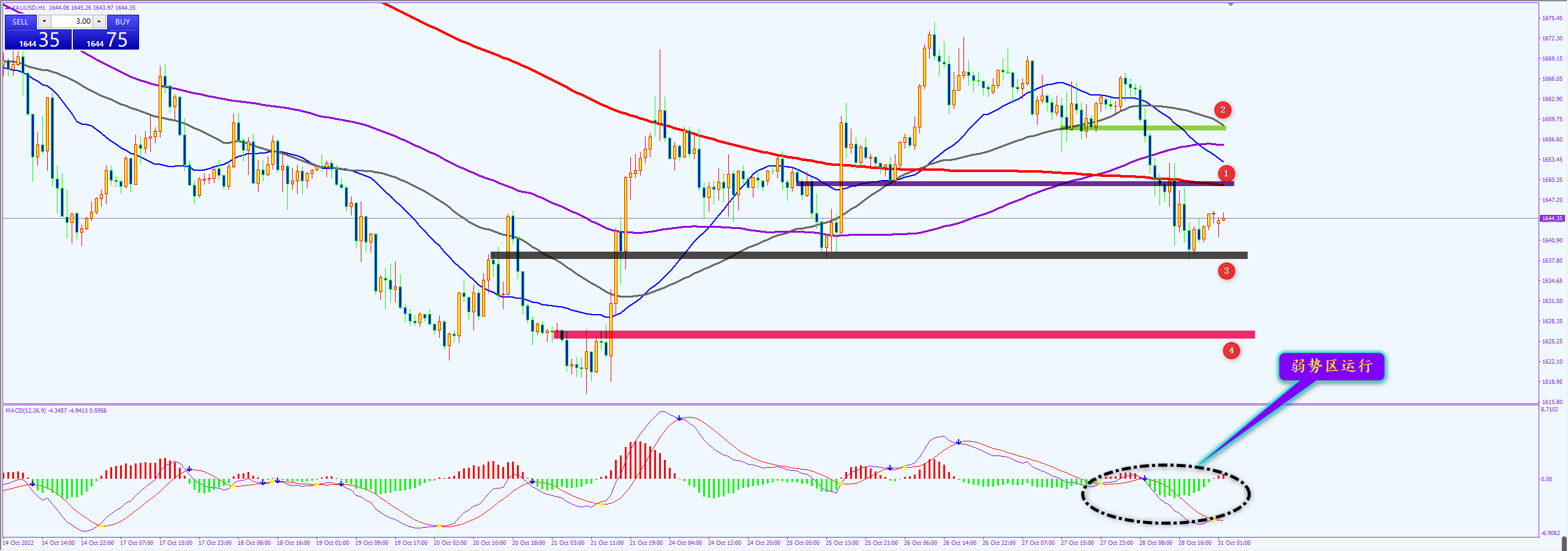 通过对原油小时图解析得知,昨日行情先跌后涨晚间一度到达85.20一线,在下方均线支撑位止跌反弹目前依然受制于下降趋势线的压制以及上方均线的压制,短期的均线系统已经形成多头排列,下方的均线已经构成支撑,目前MACD虽然在零轴下方运行但是非常有可能再次站上零轴到达强势区运行,上方一旦放量突破下降趋势线的压制以及均线的压制将会继续形成震荡上行走势,短期在操作上我们继续高空低多思路,具体建议如下: