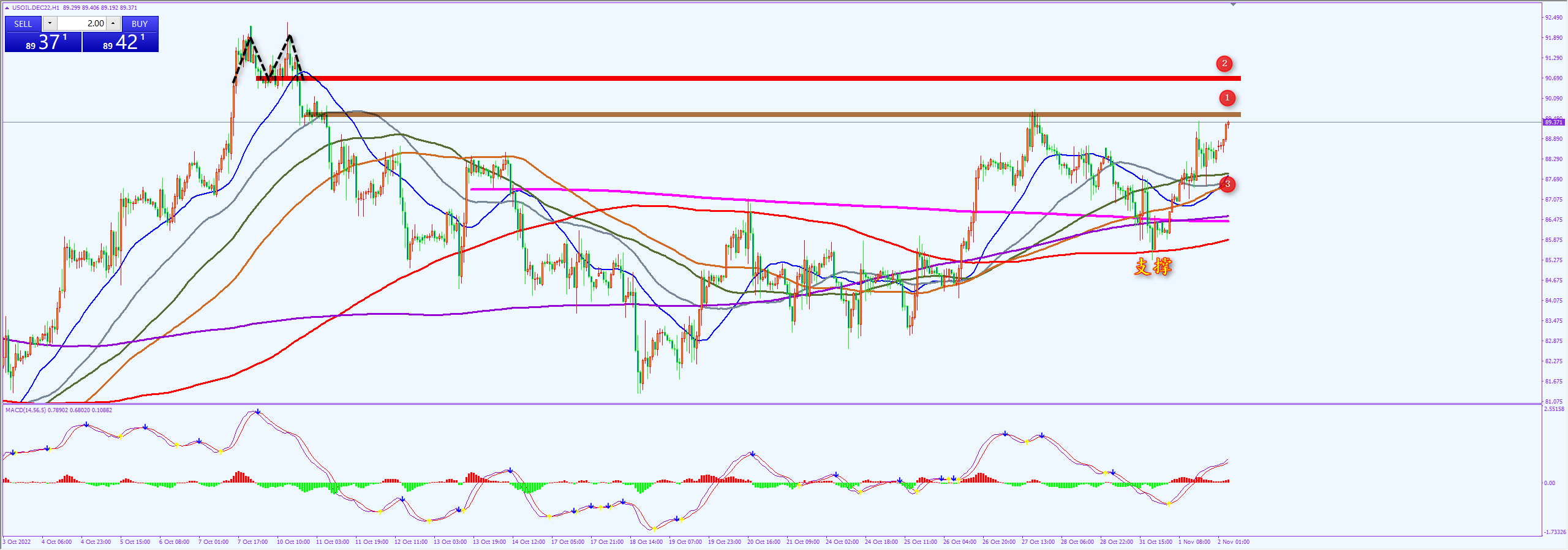 原油87.70和88.80分别做空,止损各70点,止盈各200点;