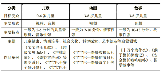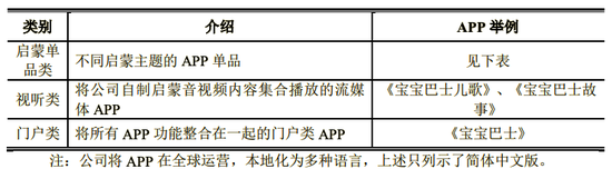 目前,在宝宝巴士整体产品线上,据招股书显示,其启蒙音视频矩阵包括: