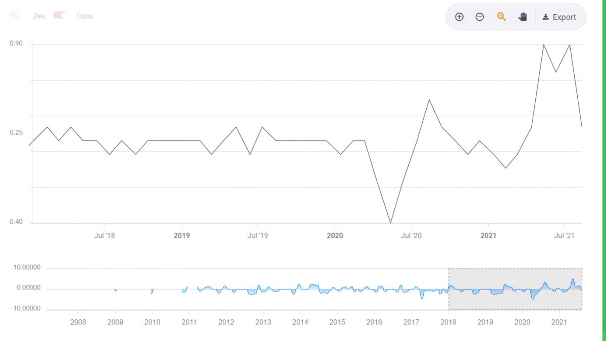 整体消费者价格指数(CPI)已经连续两个月同比上涨5.4%,一些人担心通胀不再是暂时的,成本上涨将持续下去。这意味着货币政策收紧和美元走强。在高海拔攀登太久可能导致攀登更高的山峰。