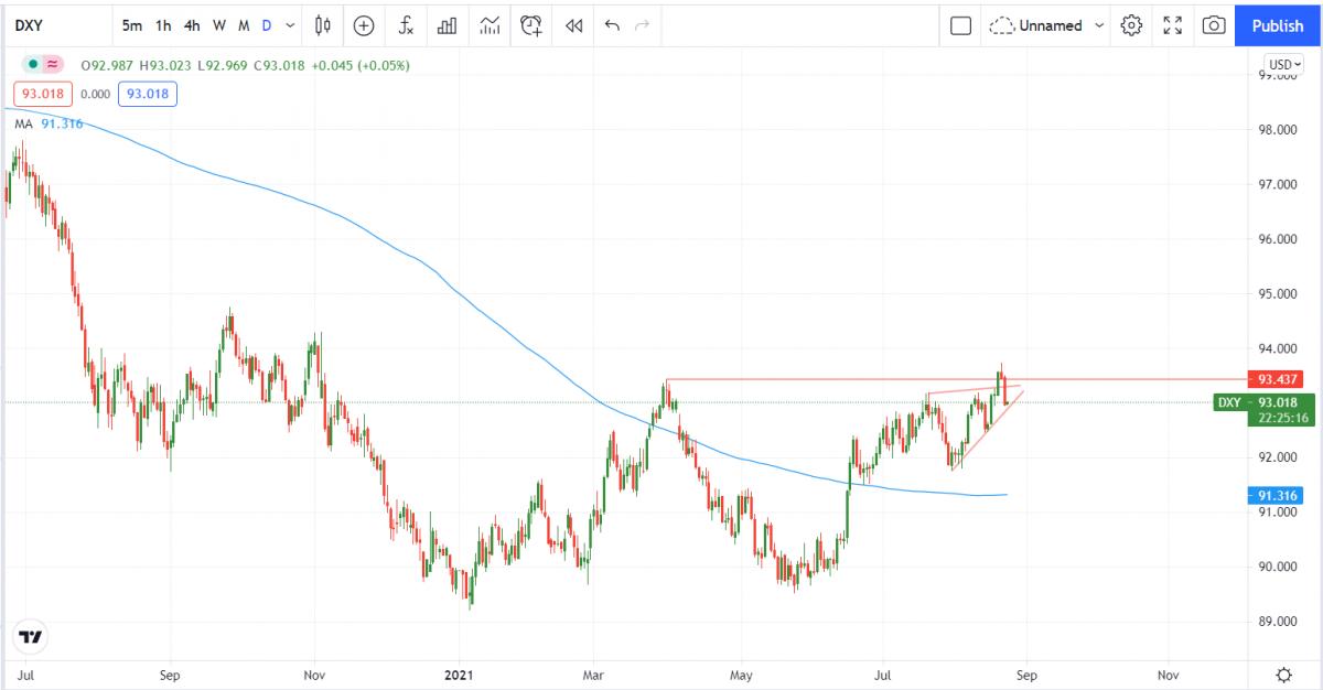 上周美元指数(DXY)创下了新的年度高点,尽管有时候价格表现疲软,但是5月低点延伸的趋势依然偏向于进一步上涨。笔者认为,突破3月创下的年度高点后美元指数回落将有望为交易者提供一个加入升势的良机。