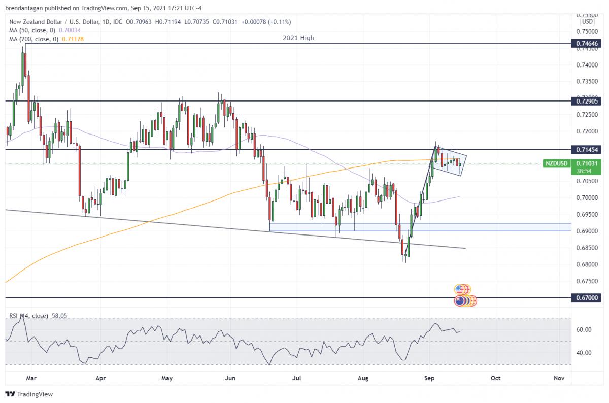 如前所述,随着疫情在新西兰逐渐平息,新西兰央行正在准备提高现金利率。目前新西兰央行只是在等待最近的疫情好转,加息似乎是板上钉钉的事情。随着货币政策可能收紧,以及日线图上构筑的潜在看涨旗形形态,基本面和技术面均暗示纽元/美元在短期内有望探索更高的汇率。备注:新西兰央行将在10月6日召开最新的货币政策会议。