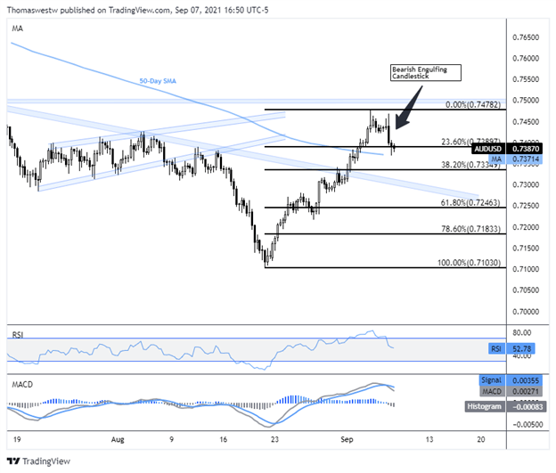 澳元,澳元/美元,贸易数据,原油—摘要: 华尔街交易者推动美股上涨,澳元跟随上涨; 贸易数据或反应澳大利亚封锁造成的疲软; 澳元/美元突破趋势线带来了光明的前景。 美股上涨,澳元/美元上行加速、突破趋势线 隔夜对风险敏感的澳元兑美元上涨,因为股票交易者买入美国股票。澳元/美元升至自8月13日以来的最高水平,与此同..