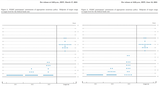 换言之,倘若美联储主席鲍威尔及其同事对尽早而非晚些才正常化货币政策表露出更强烈的医院,那么美联储官员更新的预测了将拖累黄金价格。但是,随着美联储采取基于结果的货币政策方法,倘若美联储老调重弹那么这可能会增强黄金的吸引力。