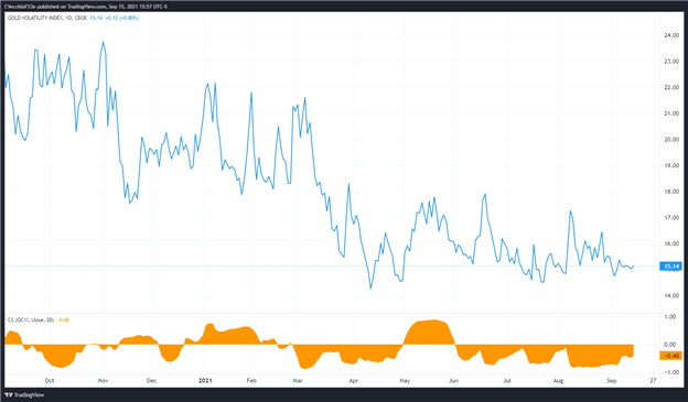 黄金波动率技术分析:日线图(2020年9月-2021年9月)