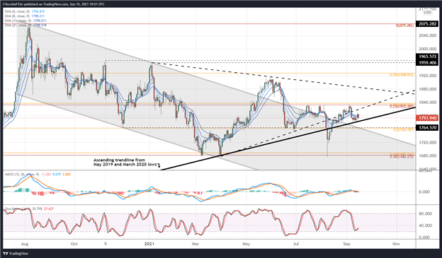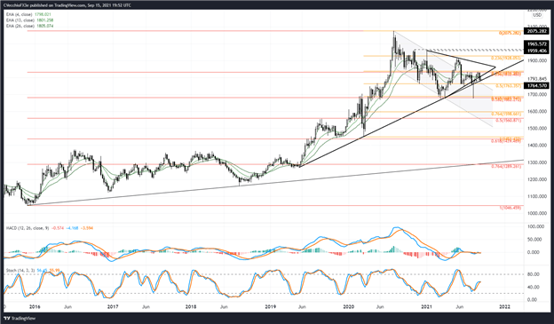 黄金价格技术分析:日线图(2020年8月-2021年9月)