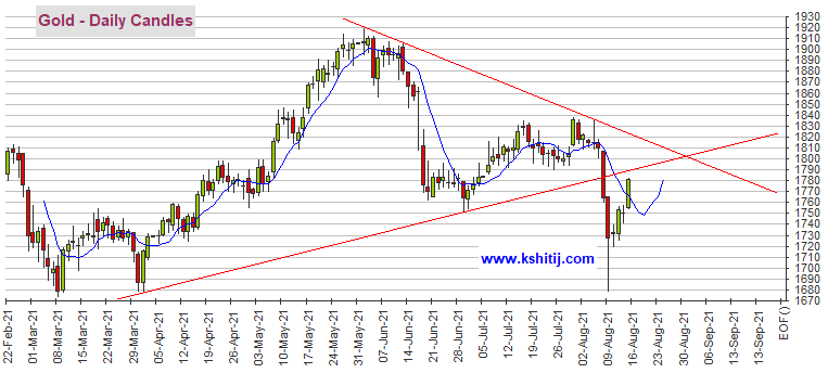 Kshitij咨询服务团队表示,黄金期货出现上涨,只要维持在1750美元/盎司上方,那么前景依然看涨,料将测试1800-1820美元/盎司。另一方面,如果黄金期货未能维持在1750美元/盎司上方,那么我们可能不得不考虑期金在未来几个交易日跌回1700美元/盎司。