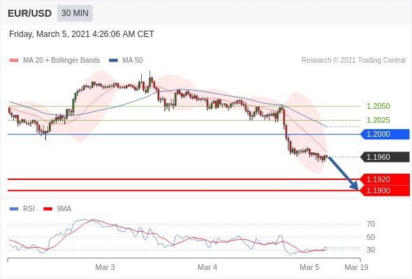 在 1.2000 之下,看跌,目标价位为 1.1920 ,然后为 1.1900 。