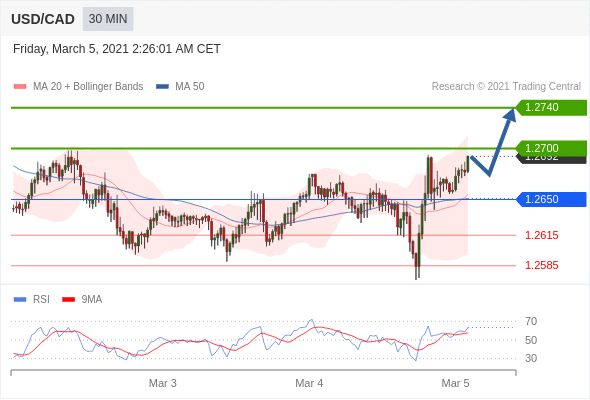 在 1.2650 之上,看涨,目标价位为 1.2700 ,然后为 1.2740 。