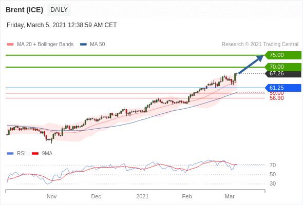 在 61.25 之上,看涨,目标价位为 70.00 ,然后为 75.00 。