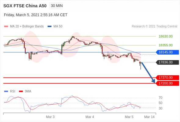 在 18145.00 之下,看跌,目标价位为 17370.00 ,然后为 17200.00 。