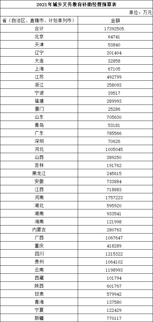 根据财政部、教育部联合印发的《关于下达2021年城乡义务教育补助经费预算的通知》(以下简称《通知》),2021年城乡义务教育补助经费预算重点支持以下几方面工作: