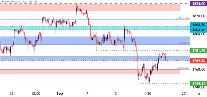 从黄金的长期来看,也有一些值得注意的水平,即跨越1755-1764的支撑区域。这在3月份的双底形成中起到了"颈线"的作用,从那时起,它多次测试了支撑,最近一次是在本周。但是,这也凸显了1834点的重要性,因为突破後表明大盘看涨趋势的恢复。如果/当1834点的突破出现时,它可能为更大范围的黄金看涨预言打开大门。