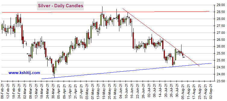 Kshitij咨询服务团队在文章中指出,黄金和白银都出现下跌,只要美元继续走强,那么黄金期货可能跌向1780美元/盎司,而白银期货料跌至25美元/盎司,然后再次回升。