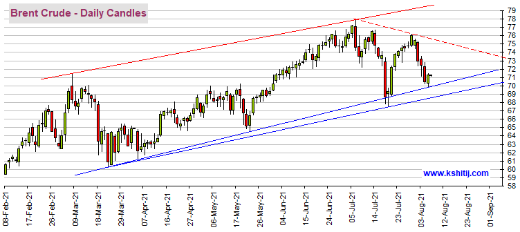 原油方面,Kshitij咨询服务团队表示,布伦特原油期货昨日一度测试69.75美元/桶,随后展开良好反弹。我们预计布油短期内将升至73-74美元/桶。另一方面,WTI原油期货价格在67美元/桶附近有支撑位,若守住该支撑位,则WTI油价可能反弹至70-71美元/桶,然后在中期内再次下跌。