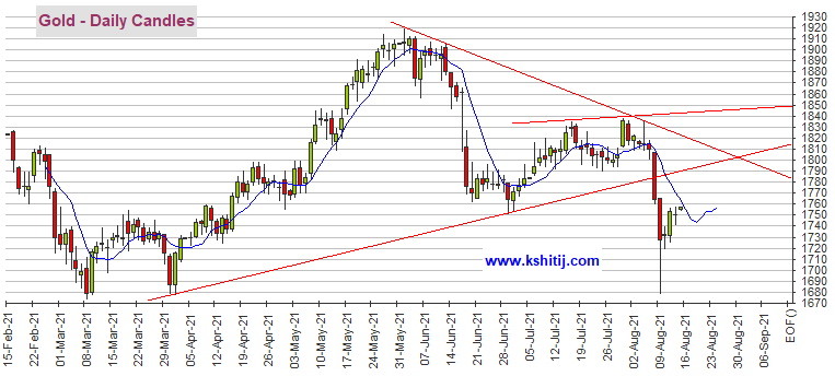Kshitij咨询服务团队表示,黄金期货已经突破阻力位1750美元/盎司。如果维持在1750美元/盎司以上,那么短期内黄金期货将涨向1800美元/盎司。然而,如果从目前的水平回落,那么期金可能跌向1700美元/盎司。需要密切关注1750美元/盎司附近的价格走势。