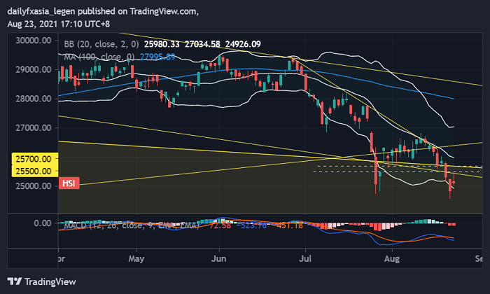 恒生指数反弹受制于关键阻力区,技术面仍维持看跌