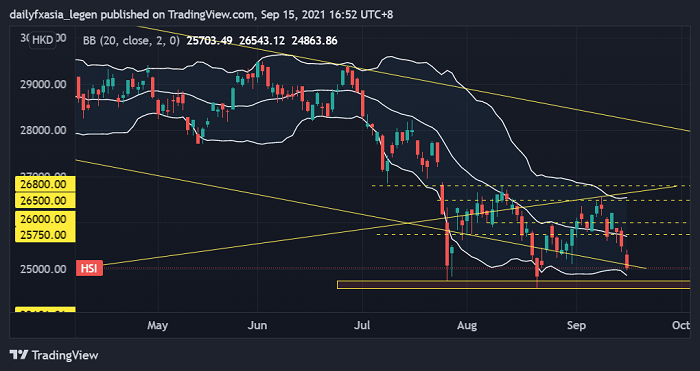 周三香港恒生指数和恒生科技指数再次出现午后跳水的景象,腾讯控股等大盘股纷纷大跌依然是主要拖累因素。技术上,恒生指数下探25000关口,恒生科技指数收于6300下方,两大指数都面临跌向7、8月低点的风险。 隔夜美国公布的8月份CI通胀数据不及预期,但是可能并不会有影响美联储削减购债规模的可能性。加之市场部分焦点转向美..